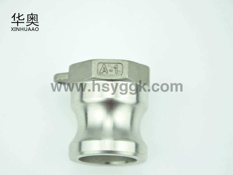 不銹鋼快速接頭A型:一端是卡在母頭里的圓弧接頭,一端是內螺紋的連接的絲扣。